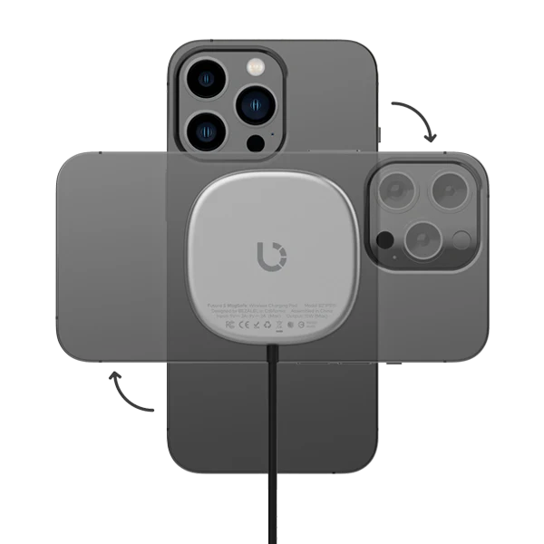 With 15W power built to fast charge your iPhone, airpods and any other Qi-enabled device. Futura S easily and perfectly aligns with your phone, saving you from all the hassle and stress when wirelessly charging.